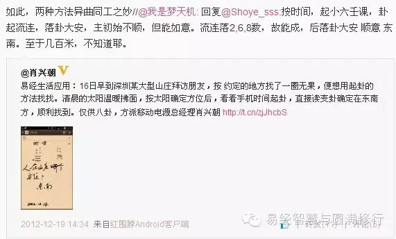今天的卦例是我新浪微博以前发出的娱乐卦例,一同道用小六壬课方法分析,得出了几乎一致的结果,殊途同归,因为都源于易经。
